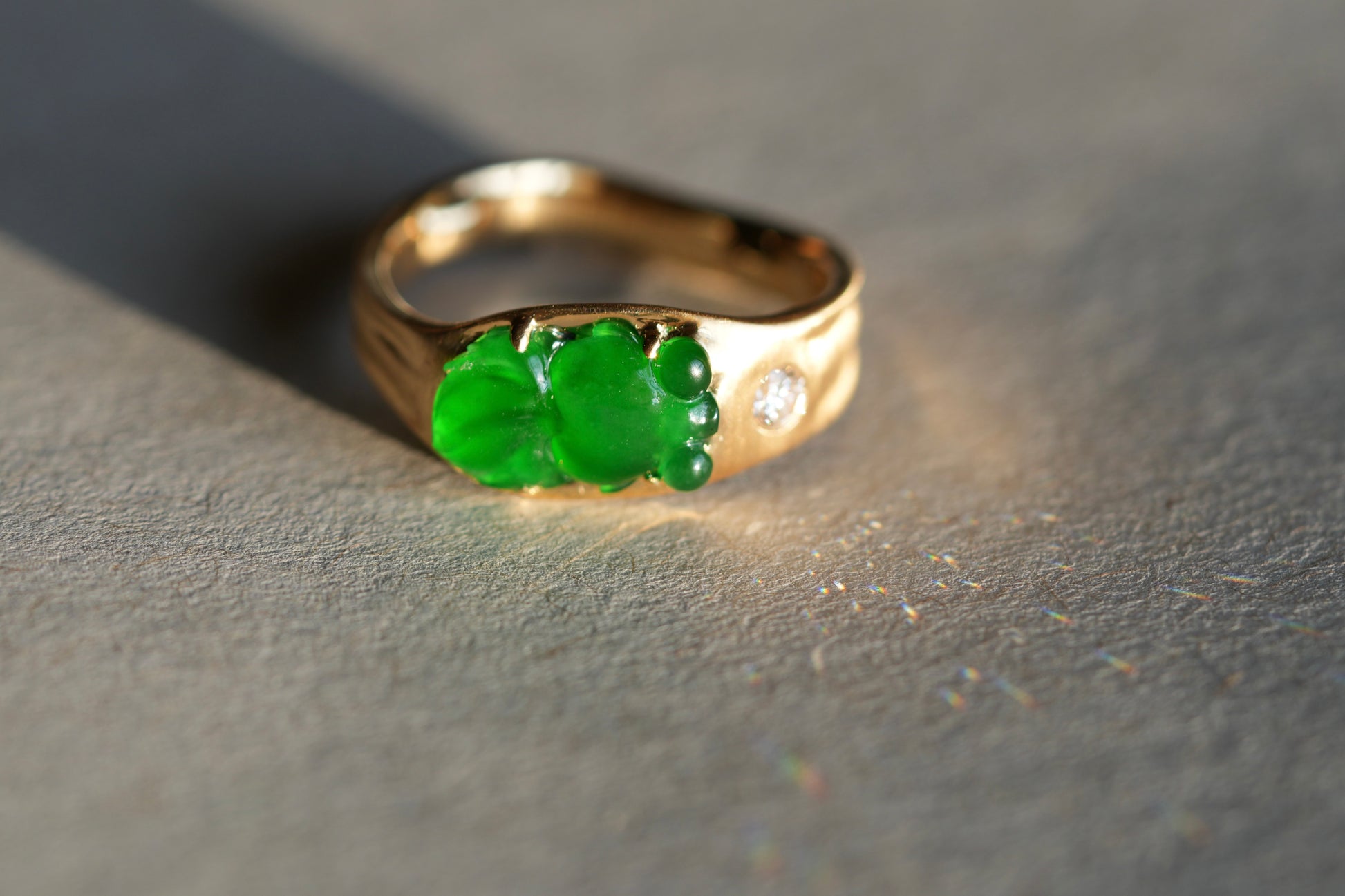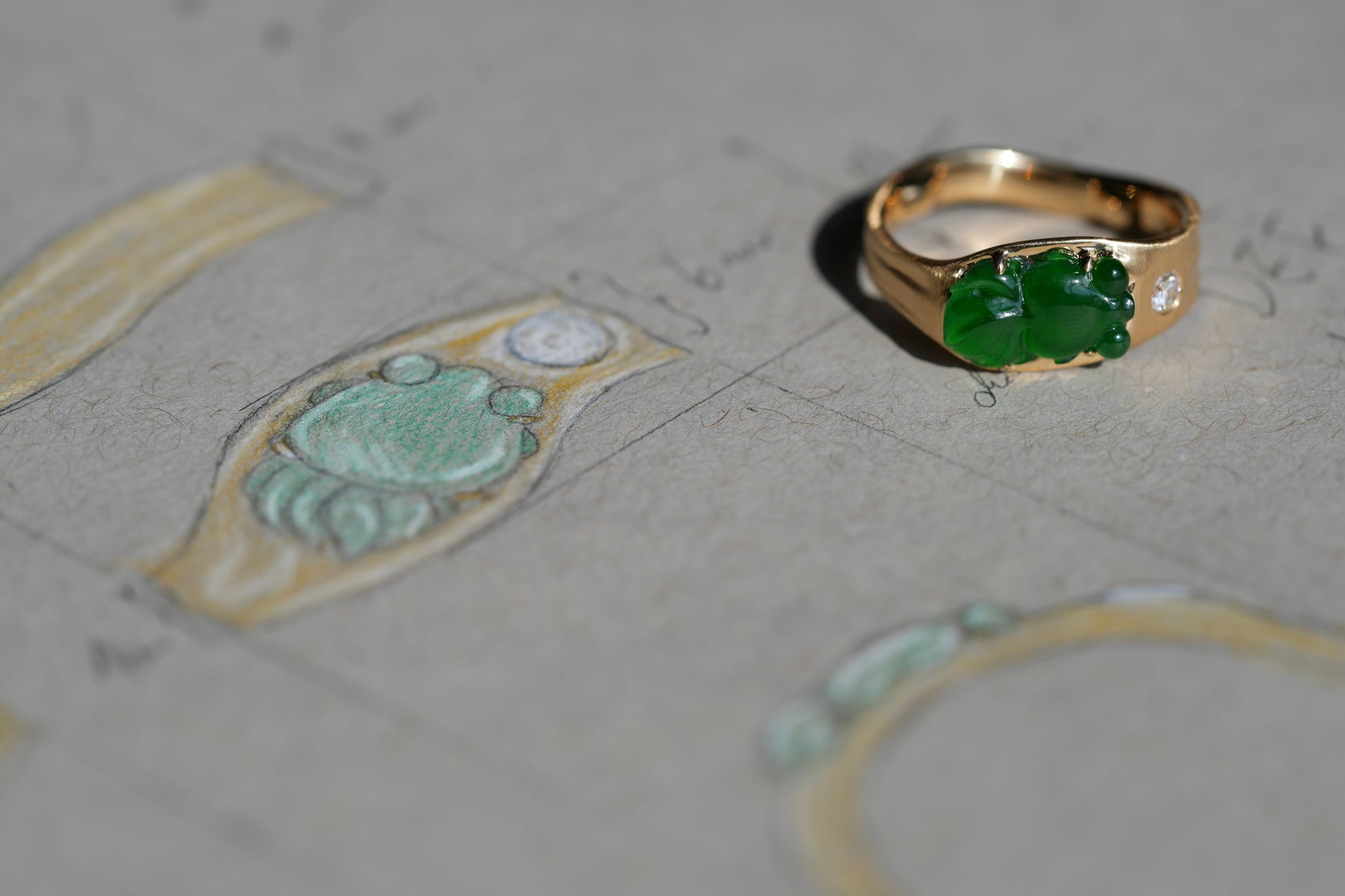 This is a ‘Toi et Moi’ ring reborn: an imperial jade goldfish for a groom of Malaysian Chinese heritage, and a brilliant-cut diamond for his Texan fiancé. Two souls, one promise.