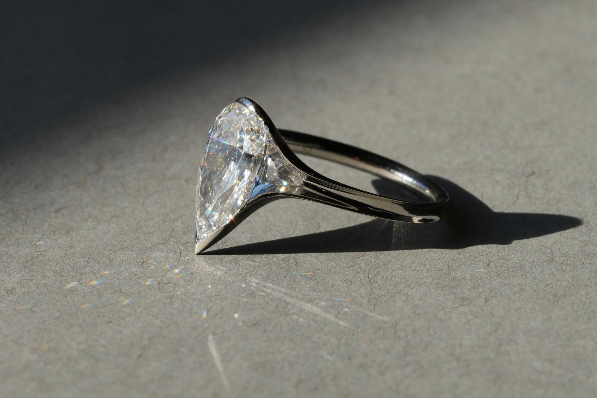 Each version of the Zen Ring (marquise, pear, trillion, and round) showcases the center stone, accentuates its shape, and enhances its brilliance.